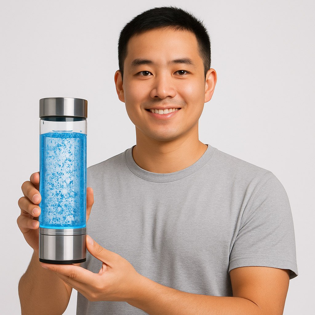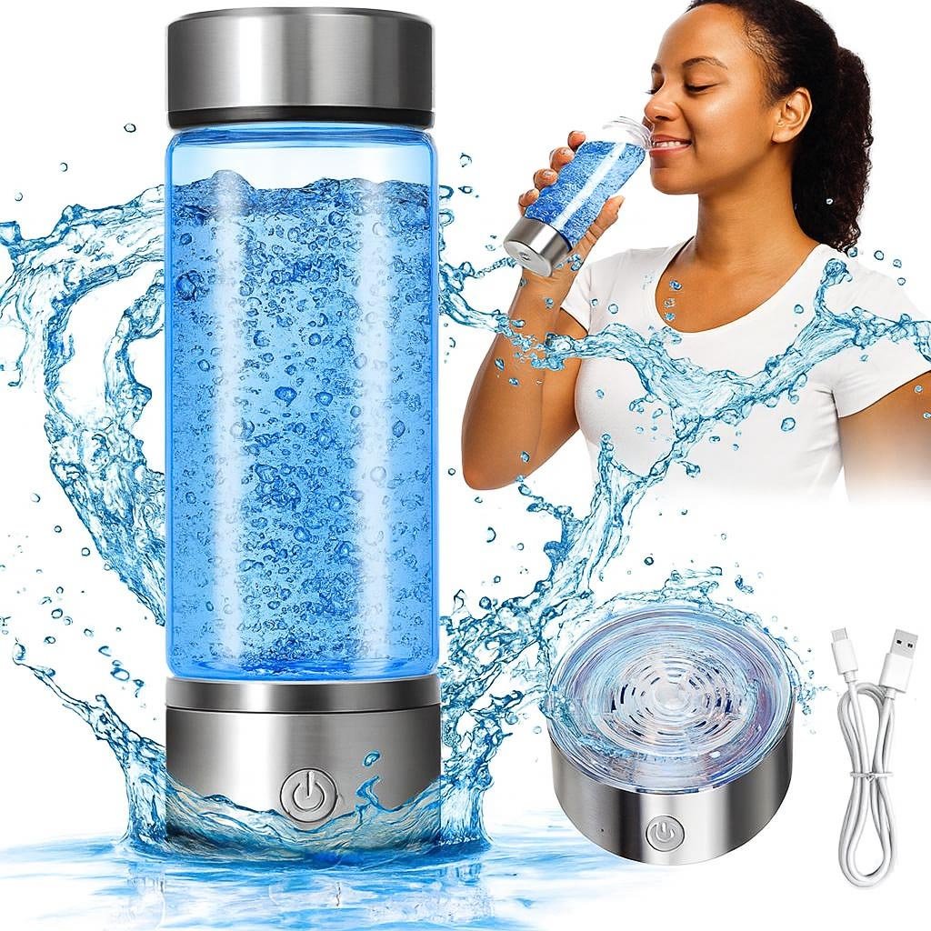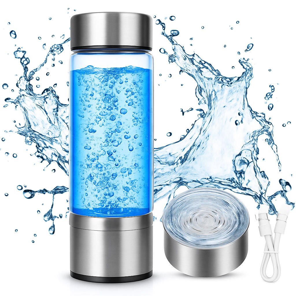 The HydroClear bottle uses electrolysis and catalyst technology to infuse molecular hydrogen into drinking water. It also filters and structures water, helping with hydration, antioxidant benefits, and cellular wellness.