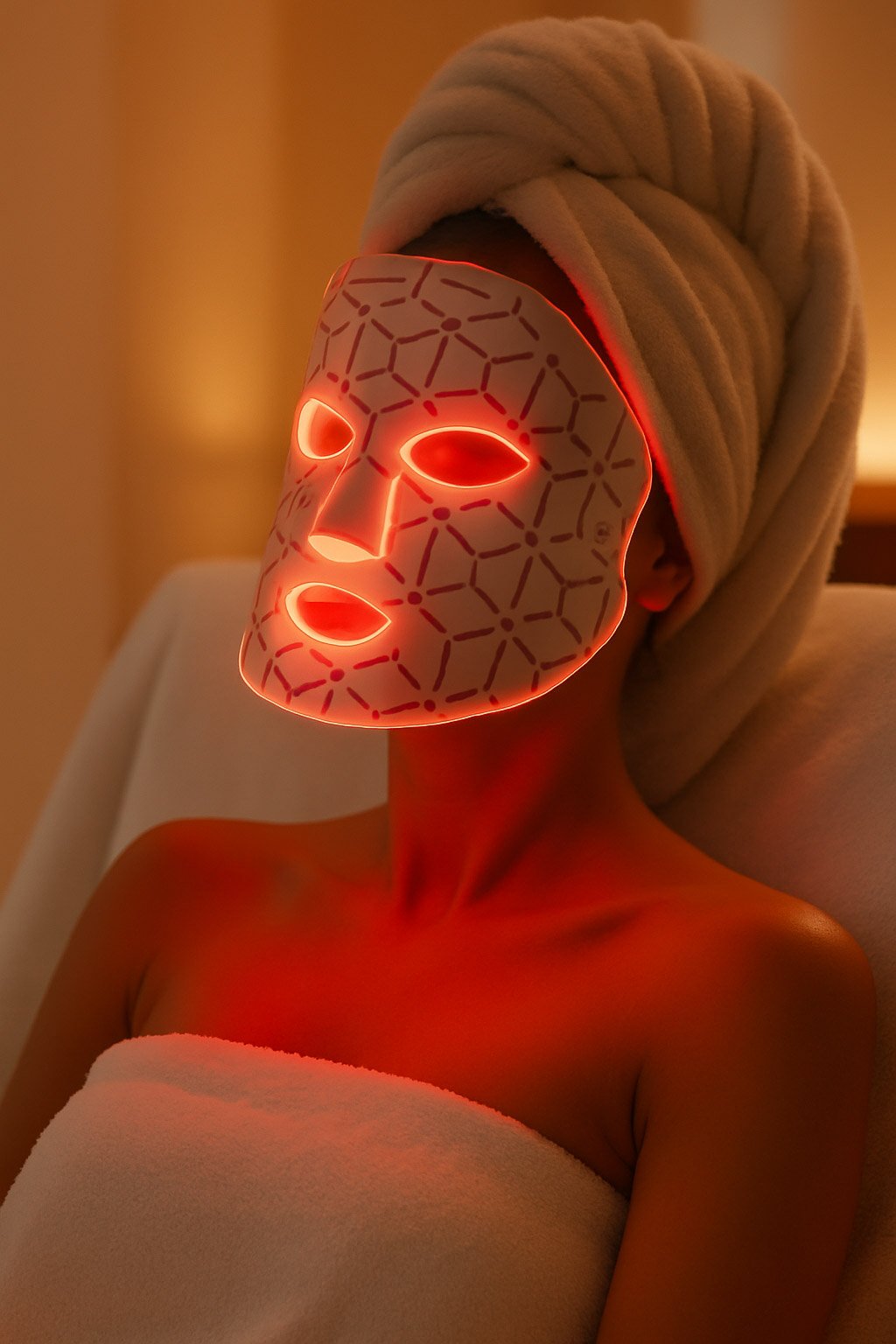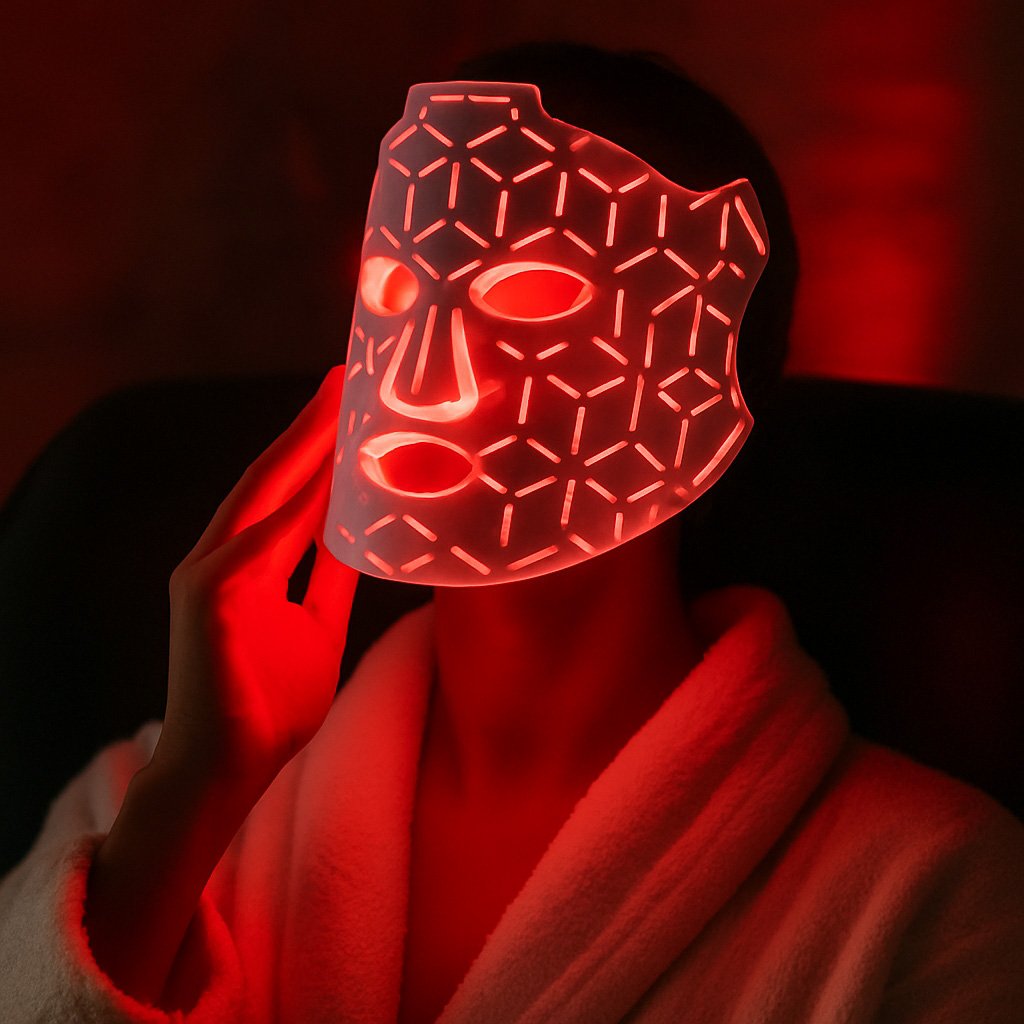 This facial mask uses multiple LEDs (red, near-infrared) to penetrate skin layers, stimulate collagen, reduce fine lines, even skin tone, and calm inflammation. It is flexible, comfortable, and usually battery-powered or wired.