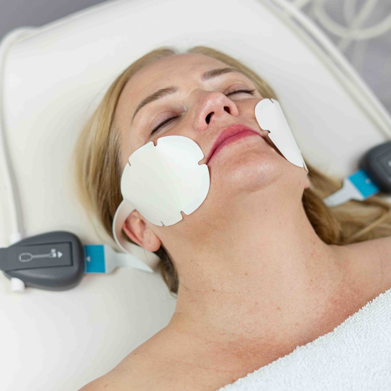 A treatment that combines two technologies – PCRF and HILFES radio waves – that allow simultaneous stimulation of the skin and facial muscles.