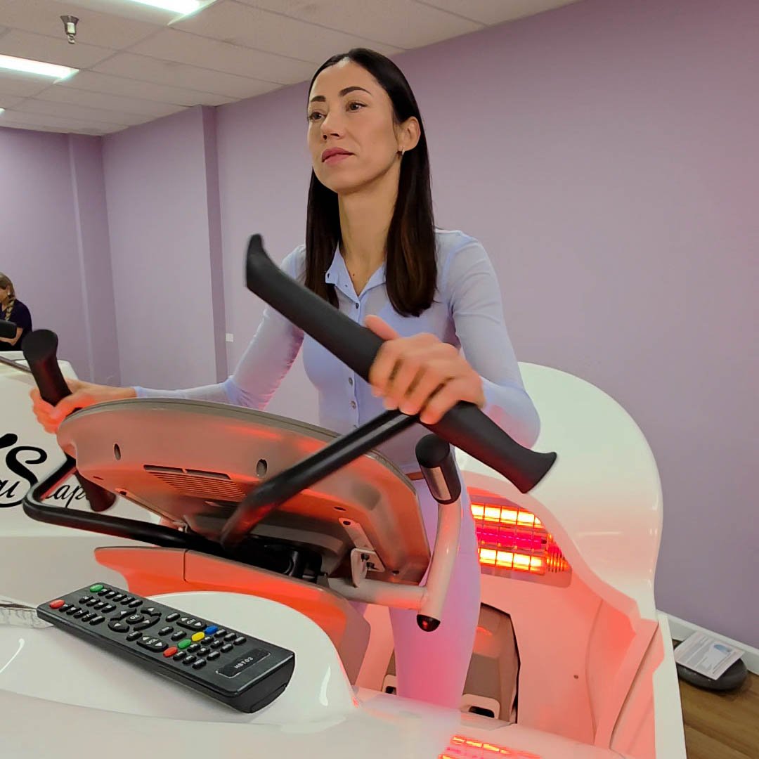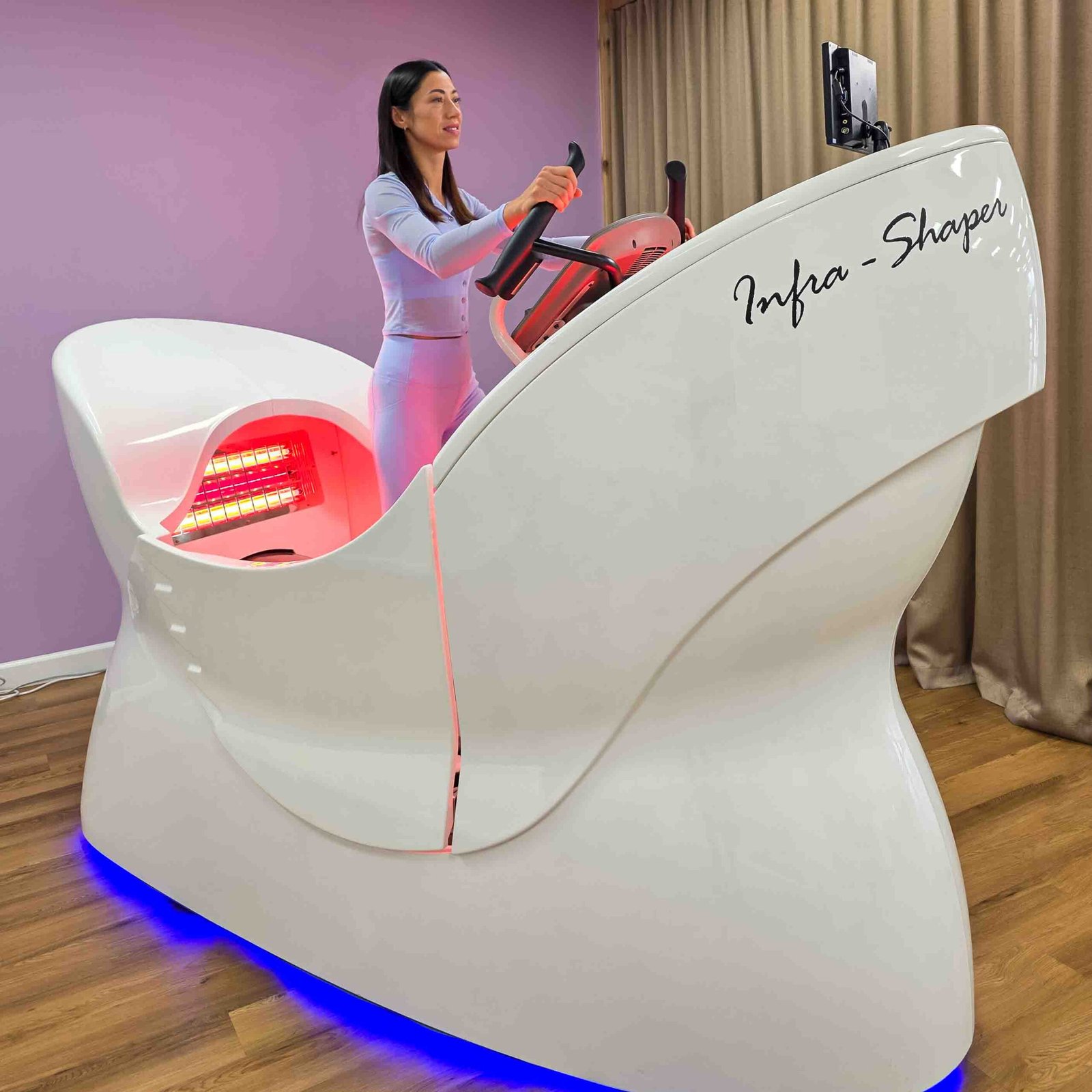 This device is designed for comprehensive ļ¬gure modeling. It combines 4 innovative components: FITNESS ZONE Infrared light (for deep reconstruction of collagen ļ¬bers) Collagen light therapy (for skin top layer regeneration) Ionization system (superb power of negative ions) Torsion elliptical trainer or bike (activation of all muscle parts) is a perfect support in ļ¬gure modeling. You can achieve the same results in 30 minutes rather the spending 2 hours using the same device without Infrared and Collagen Light at your local gym.